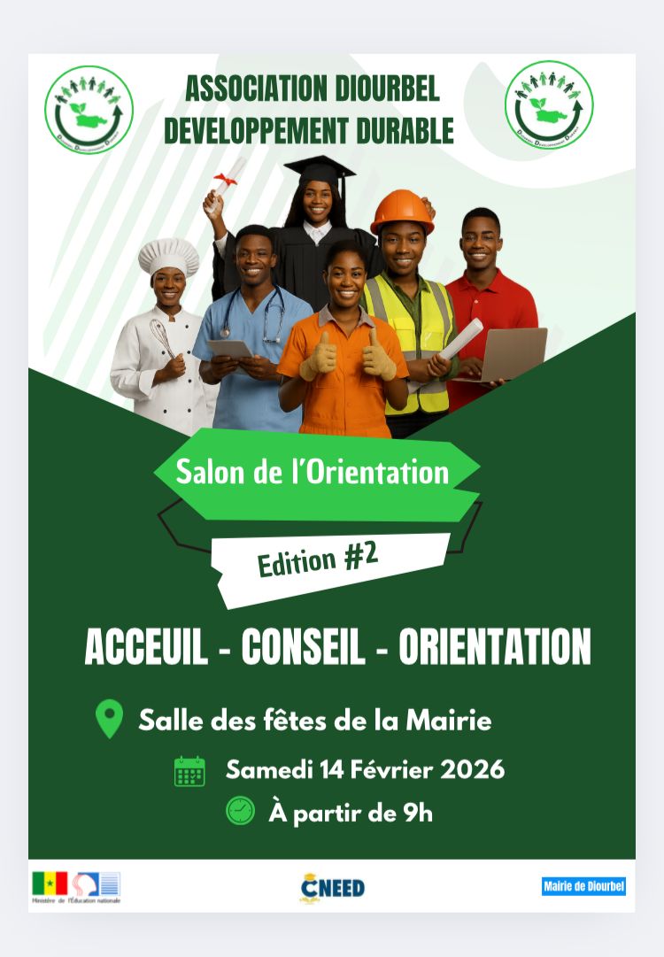 Après le succès de la première édition, l’Association Diourbel Développement Durable (3D), en partenariat avec le Collectif National des Élèves et Étudiants de Diourbel (CNEED), organise la 2ᵉ édition du Salon de l’Orientation scolaire et professionnelle.
